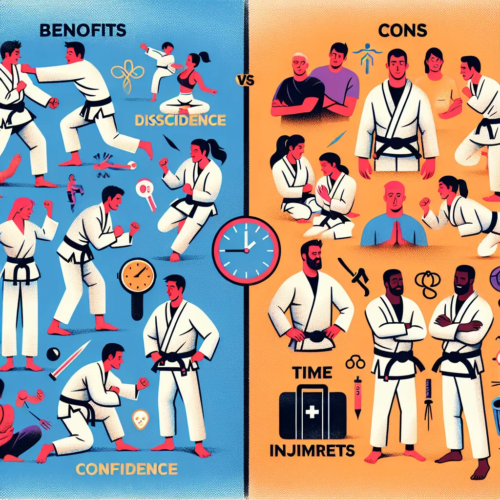 Джиу-джитсу — это увлекательное и полезное боевое искусство, которое предлагает множество преимуществ, таких как улучшение физической формы, развитие навыков самозащиты и укрепление психического здоровья. Однако оно также имеет свои минусы, такие как риск травм и финансовые затраты. Прежде чем начать заниматься джиу-джитсу, важно взвесить все плюсы и минусы и принять обоснованное решение.